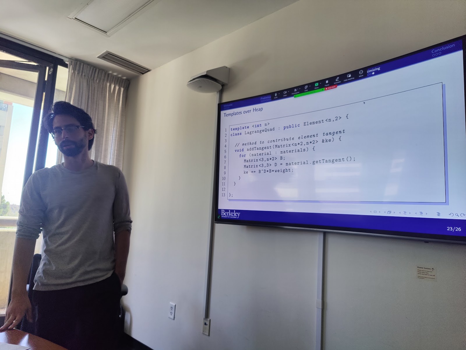The USACM Student Chapter at UC Berkeley is hosting its Fall 2025 MechBytes Seminar and Coffee Hours series. The first session took place on September 26 in 745 Davis Hall, featuring Claudio Perez from UC Berkeley speaking on high-performance computing and finite-element methods. The second session was held on October 10 in 3110 Etcheverry Hall, where Ian Li presented collaborative work with Lawrence Livermore on asteroid airburst simulations using smoothed particle hydrodynamics.